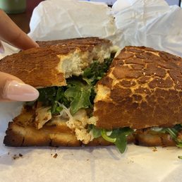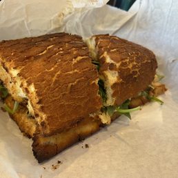 Got an iced matcha latte & chicken arugula sandwich - stayed for around an hour to do work! Decent place to sit down and work although it can be a bit loud sometimes. Service is a bit on the slower side but there's not many people working there & the quality of food is good. My chicken sandwich was really really delicious! Couldn't tell but first bite made it taste like it was on garlic bread. The bread on the sandwich was great. However, I probably wouldn't recommend the matcha latte. It was quite a bit powdery & there was nothing in it to make it sweet. Overall, a bit on the expensive side for cafe food.